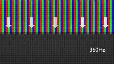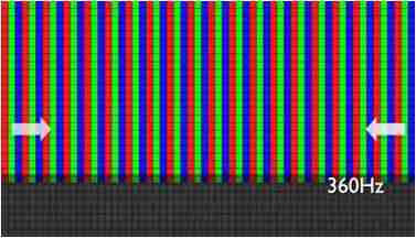 传统液晶驱动是从左到右单向进行,,,在画面更新速度愈来越愈快的情况下,,,,位于驱动线路末端的右下角区域,,,,画素的闸极来不及在短时间内获得足够电压,,,,无法显示出正确的颜色资讯。。 |