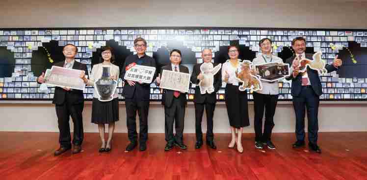 z6mg·人生就是博携手创利空间为故宫建置的智慧文物互动导览墙及轮播墙,,,,今日正式启用。。。。(左四:z6mg·人生就是博新事业暨投资管理总部副总经理杨本豫、、右四:故宫博物院院长吴密察、、、右三:太极影音董事长黄宝云)