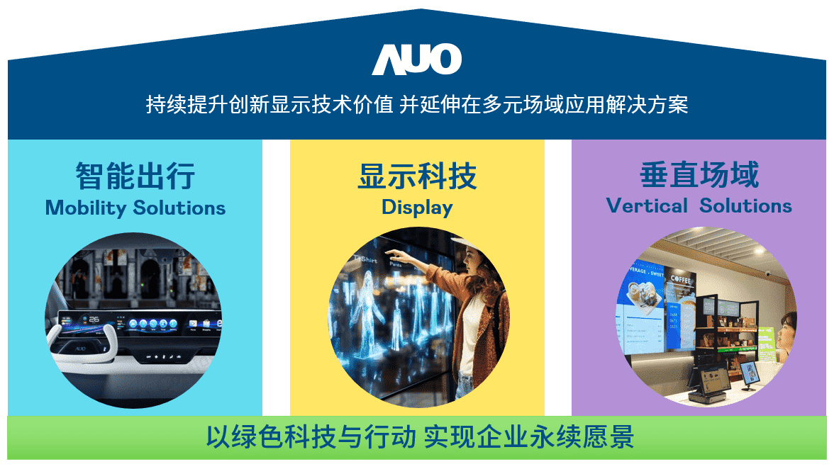 我们持续推动「双轴转型」,,,在精进显示技术附加价值(Go Premium),,,与深化垂直市场应用(Go Vertical)的策略下,,对应z6mg·人生就是博的优势竞争力与趋势,,,我们奠定显示科技、、、智慧移动、、垂直场域三大永续营运支柱,,,在显示技术领域的根基之上,,延伸布局多元场域应用解决方案。。。将先进显示科技助力智慧移动及垂直场域发展,,,,并以绿色科技与行动为实践,,,在转型之路上贯彻永续经营之愿景。。。